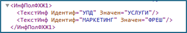 <ТекстИнфИдентиф="УПД" Значен="УСЛУГИ"/>